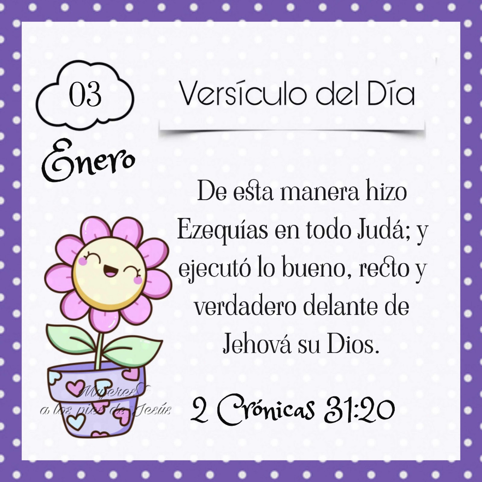 Te doy la bienvenida al blog donde comparto El Verículo del Día, un verso biblico para cada día de el año. Soy tu hermanaY amiga Blankita del ministerio de Internet Mujeres a Los Pies de Jesús. Espero cada verso el Señor lo use para hablar a tu vida, y te invito a compartirlo con otros en tus redes sociales. Tambien puedes bajar la aplicación a tu celular.